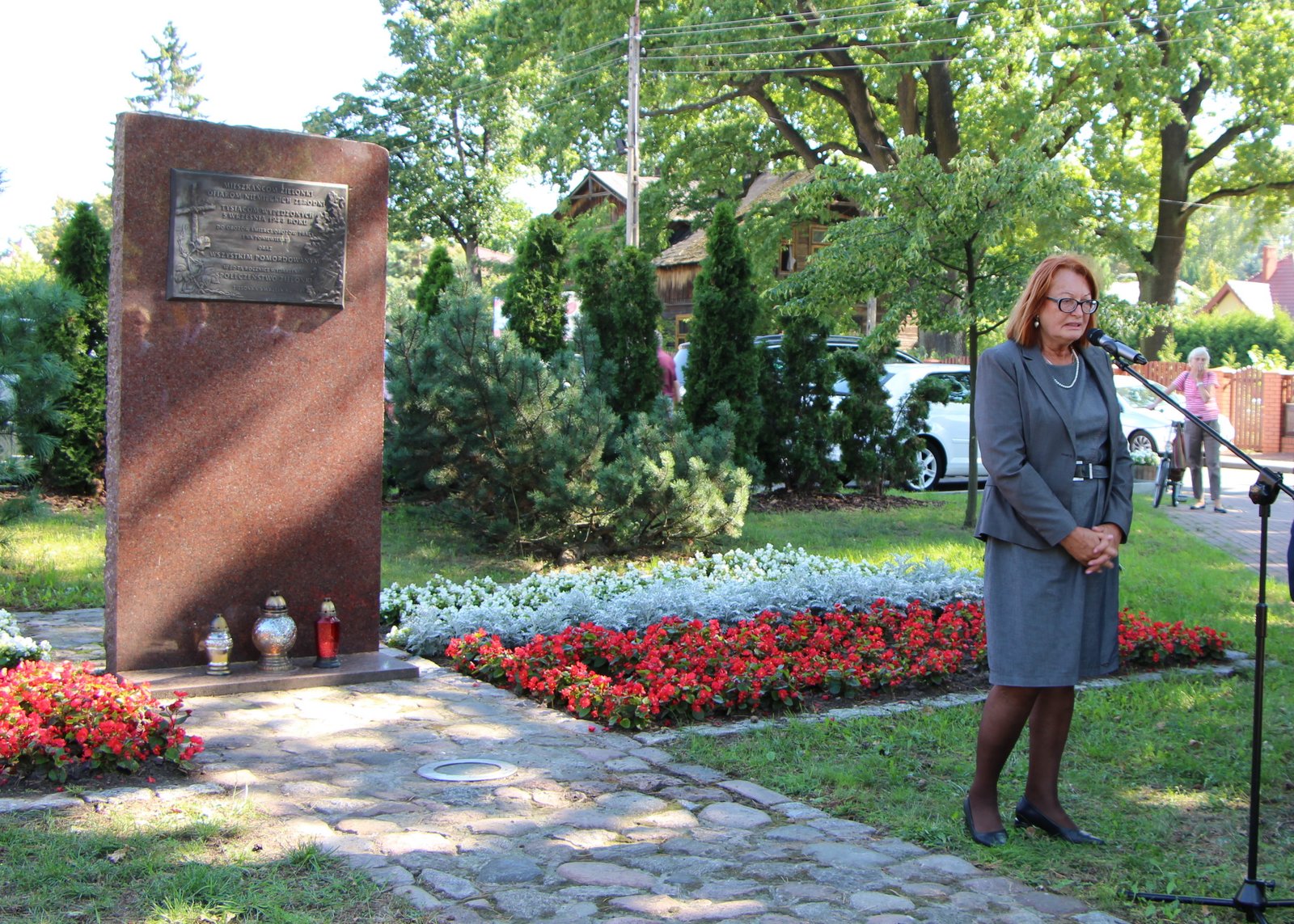 Kiedy wydawało się, że zbliża się wyczekiwany koniec niemieckiej okupacji, 5 września 1944 r., rozpoczęła się kolejna gehenna Mieszkańców Zielonki. Przeprowadzona przez Niemców akcja wypędzenia miała wyjątkowo brutalny przebieg i dotknęła wszystkich rodzin. W razie jakiegokolwiek oporu strzelano do ludzi. Wypędzeni ze swoich domów całymi rodzinami, wielu z dziećmi na rękach, w wózkach, chorzy, starsi, poprzez Dulag 121 w Pruszkowie, wywiezieni do GG, cierpieli także w nieludzkich warunkach niemieckich obozów pracy, obozów koncentracyjnych, takich jak Dachau, Mauthausen-Gusen i innych, zmuszani to pracy niewolniczej, tylko, dlatego, że byli Polakami. Wielu z nich pozostało tam na zawsze, a Ci, którzy powrócili, przeżyli kolejny dramat, gdy okazało się, że ich domy zostały zburzone i okradzione. Jednym z tych, którzy powrócili do Zielonki, był obecny na uroczystości Pan Eugeniusz Bądzyński, po wypędzeniu więzień KL Dachau, świadek tamtych tragicznych wydarzeń. Jestem pełna uznania dla Mieszkańców Zielonki, Władz Miasta, Księdza Proboszcza, Nauczycieli, Młodzieży za dbałość nie tylko o zachowanie pamięci o tragedii, która dotknęła z rąk niemieckiego okupanta Mieszkańców Zielonki 5 września 1944 r., ale i za przekaz młodszemu pokoleniu, by pamiętali i by nigdy więcej to się nie zdarzyło – powiedziała podczas uroczystości dr Anna Jagodzińska z Biura Upamiętniania Walk i Męczeństwa Instytutu Pamięci Narodowej.