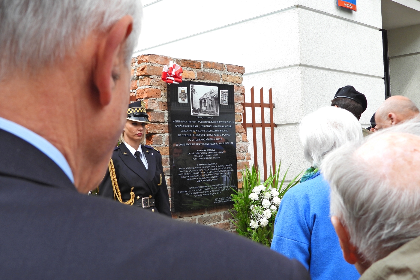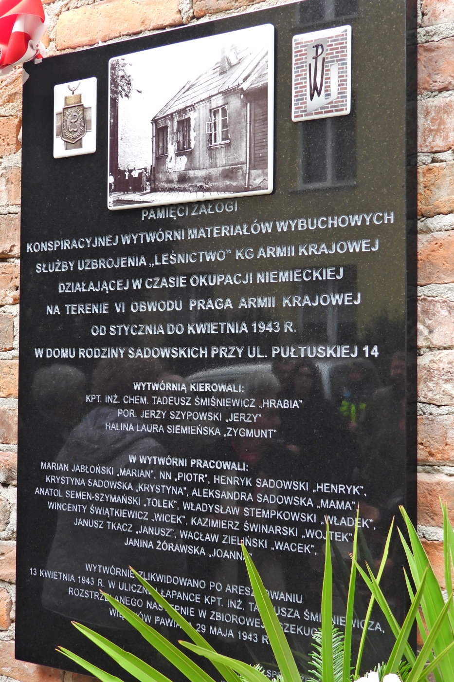 „Wraz z odsłonięciem i poświęceniem tablicy, które ma nastąpić w tym miejscu, zniknie dzisiaj, po wielu latach, kolejna »biała plama« w miejscu walki Warszawiaków z niemieckim okupantem. Tu, pod numerem 14 przy ulicy Pułtuskiej, stał niewielki, parterowy dom, należący do rodziny Sadowskich, w którym 76 lat temu garstka żołnierzy Armii Krajowej podjęła się szczególnie niebezpiecznej pracy konspiracyjnej. W styczniu 1943 roku, gdy bestialstwo okupanta wobec Polaków osiągnęło szczyty, tu, w tym miejscu, powstała druga wytwórnia materiałów wybuchowych Armii Krajowej – pierwsza w Służbie Uzbrojenia. Jej poprzedniczka przy ulicy Asfaltowej 15 na Mokotowie została „spalona”. Gestapo wpadło na jej trop. W tragicznym dniu 13 stycznia 1943 roku na ulicy Asfaltowej aresztowany został, torturowany w śledztwie i zamordowany w więzieniu Gestapo – Pawiaku – inżynier Bolesław Honowski, zwany Andrzejem, współkierujący tą pierwszą wytwórnią.”