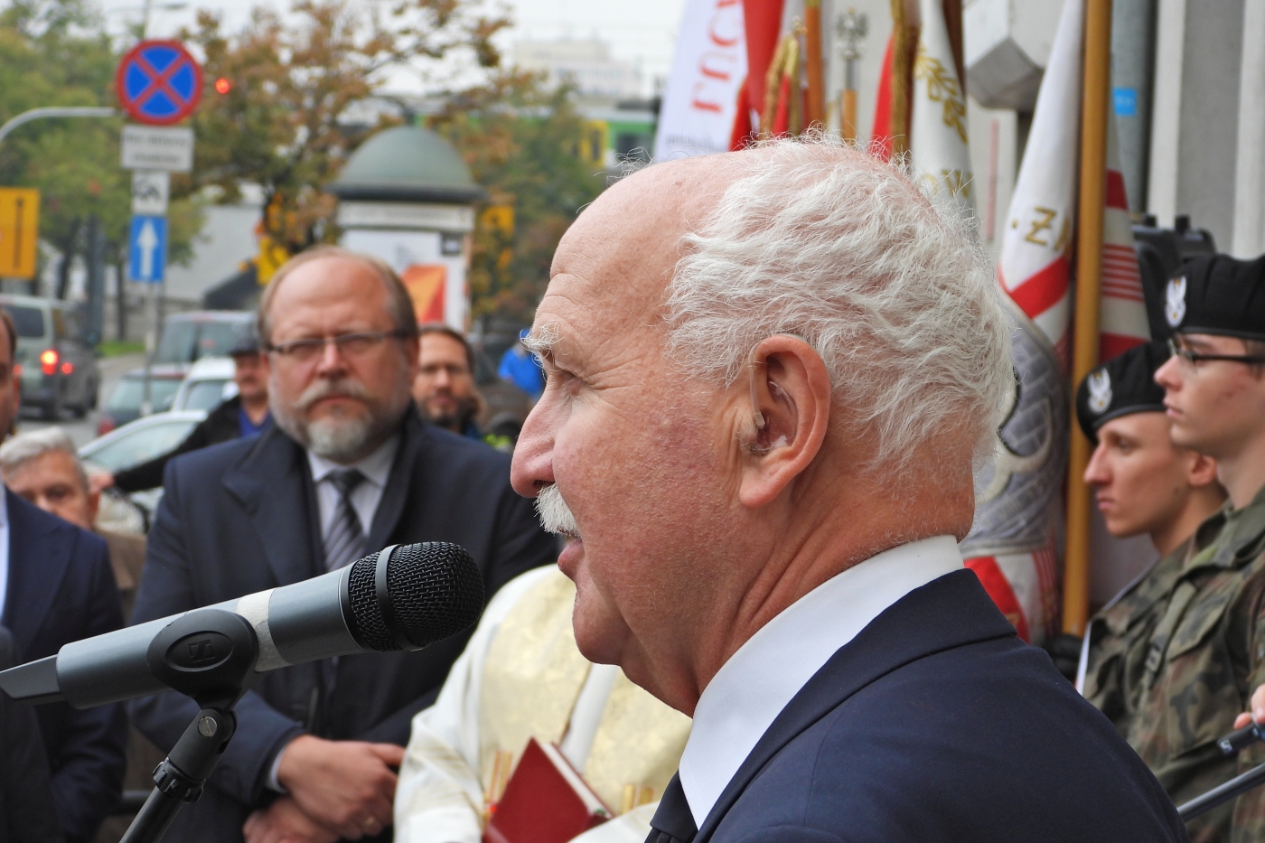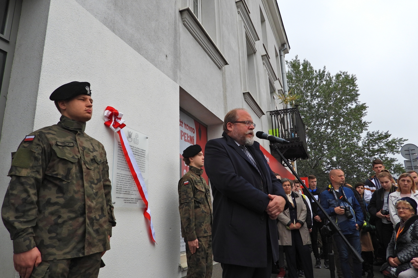 Po chwili refleksji nad słowami, które wybrzmiały podczas przemówień, dyrektor Adam Siwek, prof. Stefan Hahn, Anna Pawlak i Maria Marszałek, Wacław Gluth-Nowowiejski, prof. Marek Rocki, Bożena Manarczyk oraz Karol Kowalczyk dokonali uroczystego odsłonięcia tablicy. Ks. dr Józef Gontarz, proboszcz parafii pw. św. Wincentego Pallottiego dokonał poświęcenia tablicy.