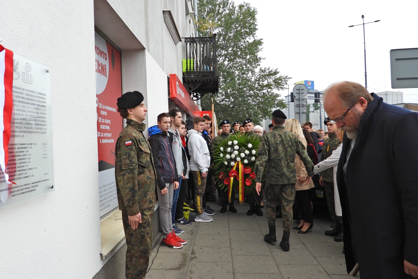 Na koniec uroczystości delegacje w asyście uczniów klasy wojskowej z LXXII LO im. gen. Jakuba Jasińskiego oddały hołd bohaterom Warszawy, składając wiązanki przed tablicą.