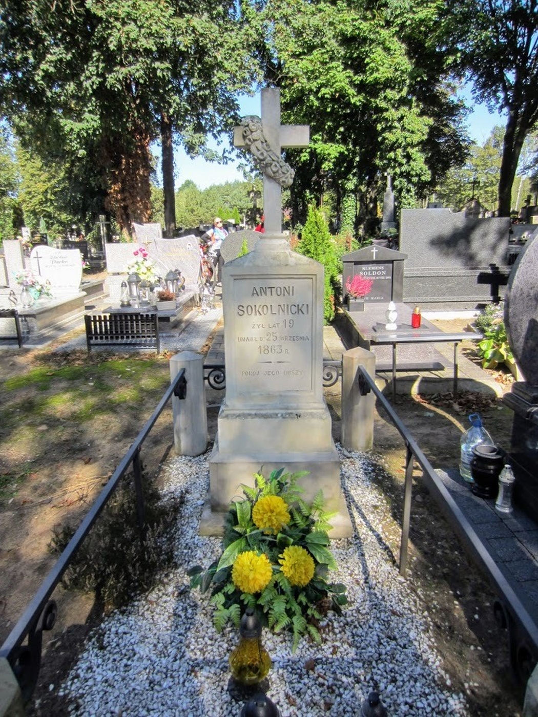 W Skoszewach Starych uczestnicy rajdu udali się na cmentarz parafialny, gdzie przy zbiorowym grobie Armii „Łódź” omówiono problematykę grobów wojennych w aspekcie umieszczanych na nich symboli, inskrypcji, ogólnej estetyki itp. Natomiast przy mogile powstańca styczniowego Antoniego Sokolnickiego rowerzyści wysłuchali informacji o walkach toczących się w okolicach Dobrej i Dobieszkowa podczas Powstania Styczniowego, szczególnie aktywności Marii Piotrowiczowej.