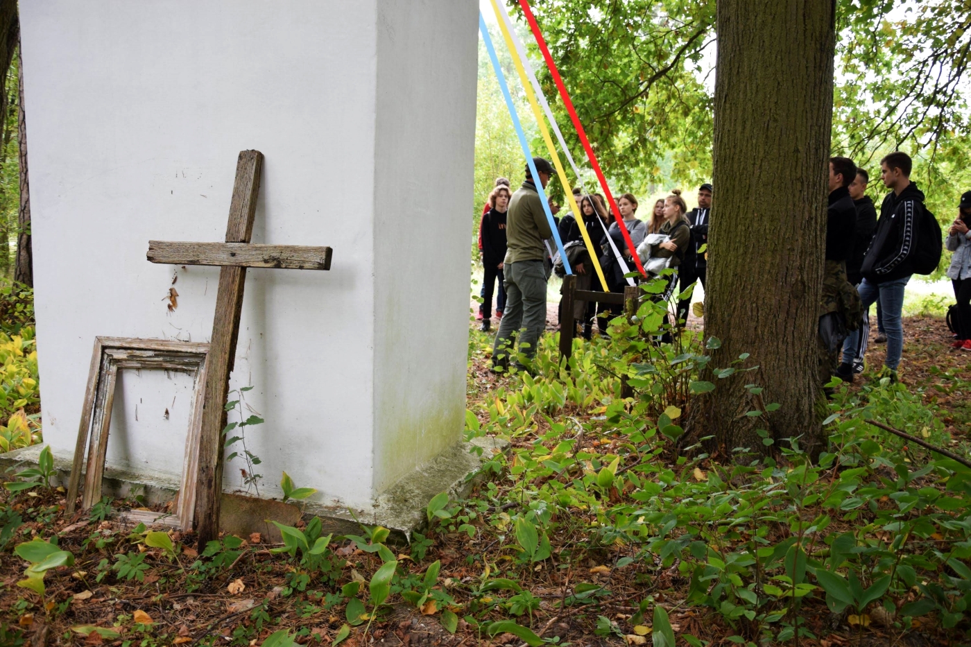Następnie na skraju miejscowości Koło, gdzie 10 grudnia ubiegłego roku przeprowadzane Biuro Upamiętniania Walk i Męczeństwa IPN prowadziło prace ekshumacyjne, uczestnicy wycieczki zostali zapoznani z charakterem działalności pionu upamiętniania IPN, ze specjalnym uwzględnieniem problematyki ekshumacji grobów wojennych.