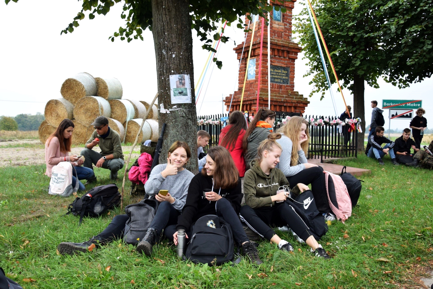 W Barkowicach Mokrych uczniowie dotarli do dwóch miejsc pamięci dotyczących działalności partyzanckiej Armii Krajowej w Piotrkowskiem. Przy jednej z przydrożnych kapliczek, na której umieszczono tablicę upamiętniającą mieszkańców Barkowic Mokrych zamordowanych lub aresztowanych przez Niemców w wyniku represji związanych z działalnością oddziałów partyzanckich na tym terenie, została omówiona historia Okręgu Łódź Armii Krajowej, a w szczególności Inspektoratu Piotrkowskiego. Uczestnicy wycieczki uczcili pamięć pomordowanych i represjonowanych Polaków poprzez zapalenia znicza z biało-czerwona wstęgą. Następnym odwiedzonym miejscem był pomnik 25. Pułku Piechoty Armii Krajowej, który został umieszczony w miejscu rozpoczęcia przez pułk szlaku bojowego 22 lipca 1944 r. Upamiętnię to było pretekstem do krótkiej prelekci o dziejach pułku.