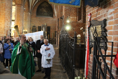 Uroczystość rozpoczęła się o godz. 11.00 Mszą Św. celebrowaną przez proboszcza Kościoła Św. Brygidy księdza Ludwika Kowalskiego. Po liturgii miało miejsce zaprezentowanie tablicy pamiątkowej. Odsłonięcia tablicy dokonała Katarzyna Lisiecka, naczelnik Oddziałowego Biura Upamiętniania Walk i Męczeństwa w Gdańsku, poświęcenia Proboszcz Parafii Św. Brygidy ksiądz Ludwik Kowalski. W uroczystości uczestniczyli członkowie Bractwa Oblatów Św. Brygidy z Andrzejem Adamczykiem na czele, przewodniczący Zarządu Regionu Gdańskiego NSZZ „Solidarność” Krzysztof Dośla, przewodniczący ZR Słupskiego Stanisław Szukała, przewodniczący i zastępca przewodniczącego Stowarzyszenia „Godność” Czesław Nowak i Andrzej Osipów oraz artysta rzeźbiarz prof. Wawrzyniec Samp.
