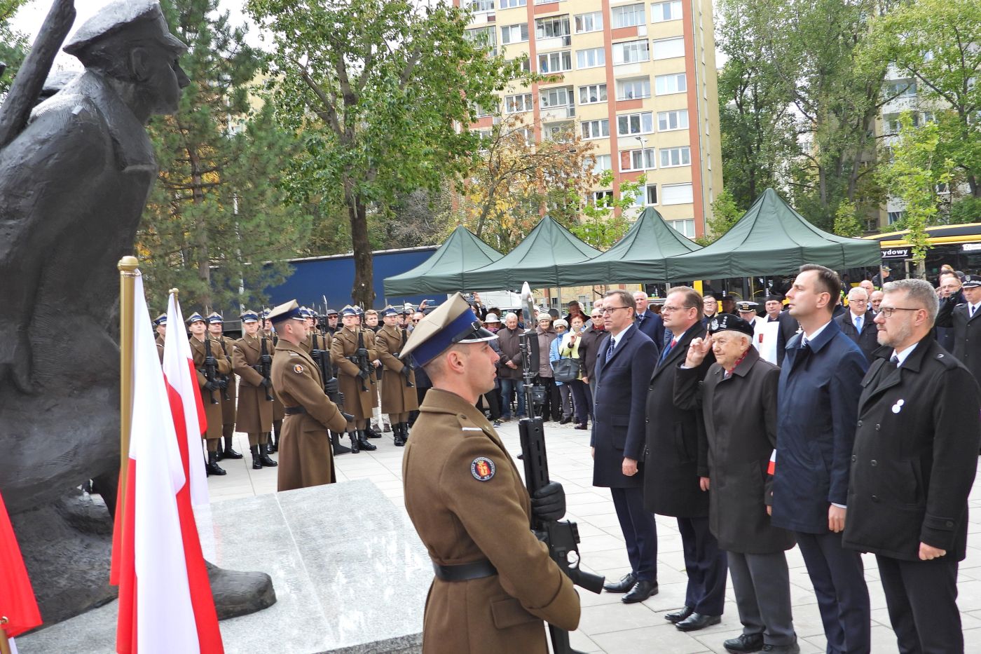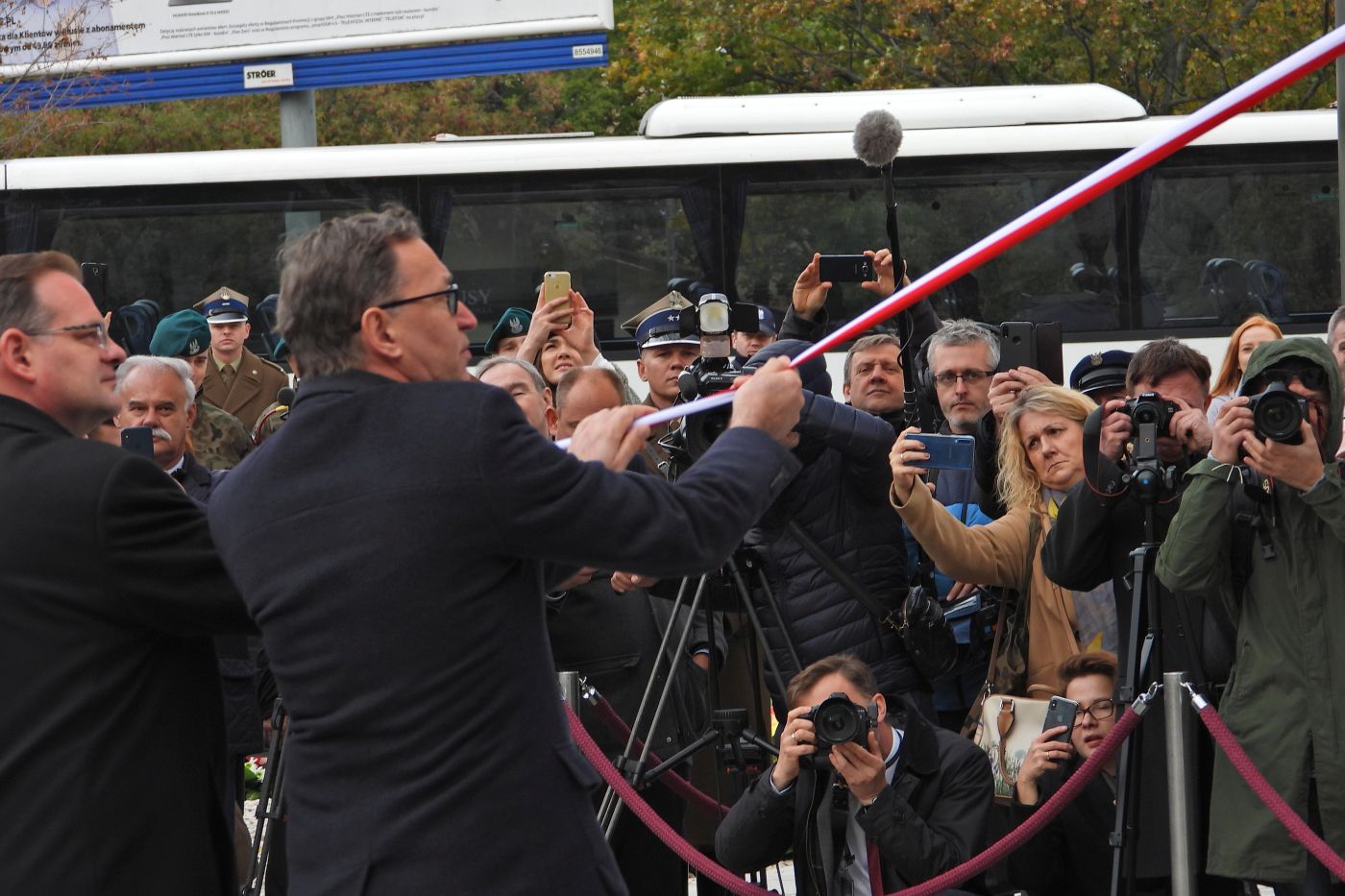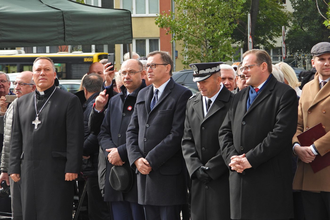 W odsłonięciu pomnika uczestniczyli także zastępca prezesa dr Mateusz Szpytma oraz zastępca dyrektora Biura Upamiętniania Walk i Męczeństwa Joanna Piskorz.