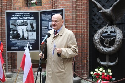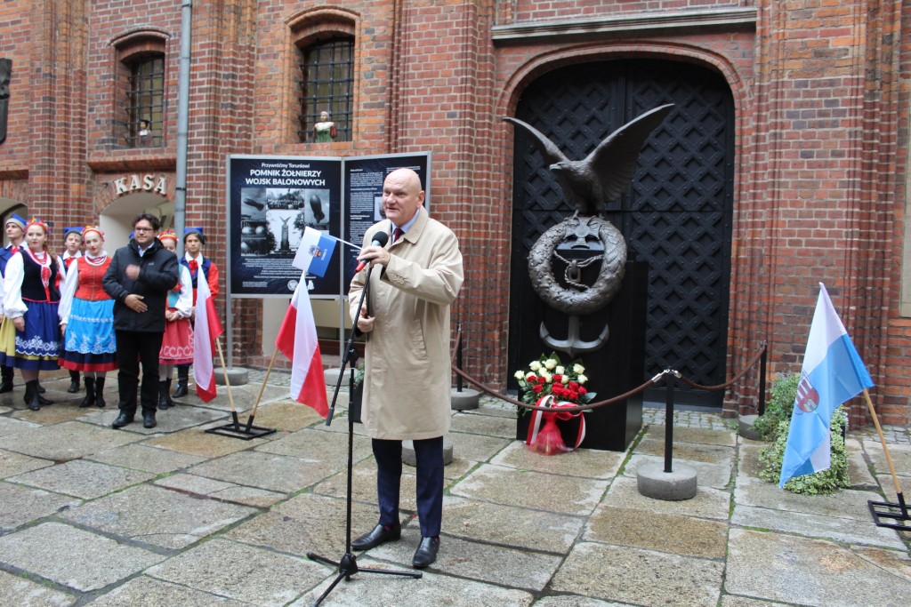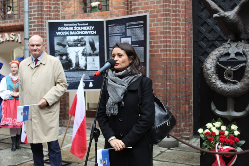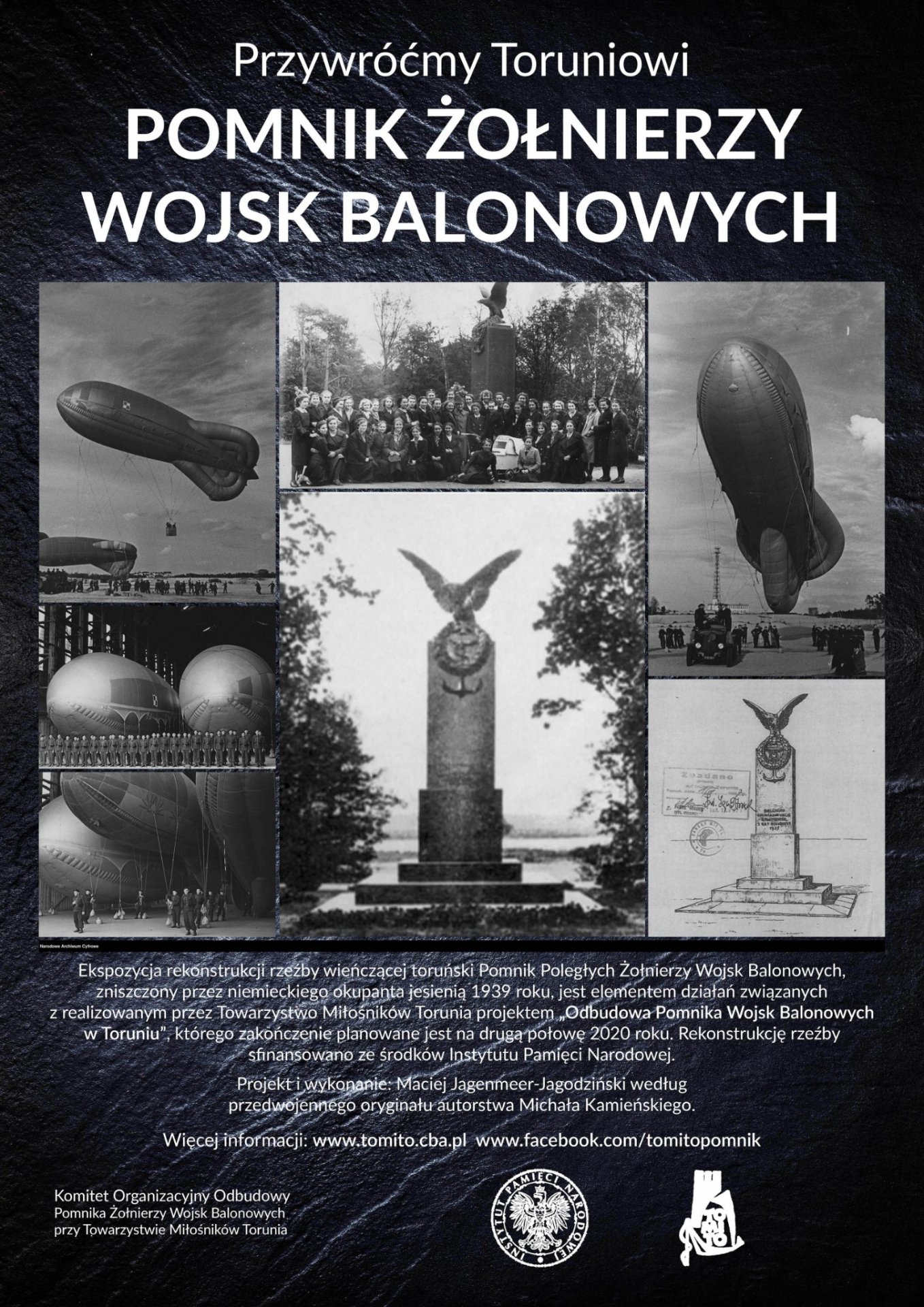 W listopadzie 1918 r., po 123 latach zaborów Polska powróciła na mapę polityczną Europy. Chociaż formalnie proklamowano niepodległość, młode państwo stanęło przed kolejnym, olbrzymim wyzwaniem. Rozpoczął się kilkuletni proces walki o granice odrodzonej Rzeczypospolitej, w którym udział wzięły m.in. wojska balonowe. Ich sformowanie było skutkiem opanowania przez powstańców wielkopolskich poznańskiej hali sterowcowej oraz przejęcia znajdującego się tam sprzętu. Utworzone jednostki wykorzystano już wkrótce podczas wojny polsko-bolszewickiej. Początkowo prowadziły obserwację na froncie, później, ze względu na dynamikę walk, 1. Pułk Aeronautyczny przekształcono w formację piechoty. Mimo znacznych utrudnień, takich jak brak należytego uzbrojenia i stałego wsparcia artylerii, „aeropiechurzy” wykonali postawione przed nimi zadania. Kilkunastu z nich poległo, ponosząc najwyższą ofiarę. Żołnierze 1. Pułku Aeronautycznego za swoje czyny bojowe zostali uhonorowani łącznie 3 orderami Virtuti Militari i 66 Krzyżami Walecznych. Po zakończeniu działań wojennych jednostki zostały rozlokowane w trzech miastach: Poznaniu, Legionowie oraz Toruniu. W tym ostatnim Batalion Balonowy stacjonował nieprzerwanie, aż do wybuchu II wojny światowej. Żołnierzom, którzy zginęli podczas wojny polsko-bolszewickiej poświęcono monument. Został odsłonięty 5 maja 1937 r. w Parku Miejskim na Bydgoskim Przedmieściu. Tego dnia przypadało święto Batalionu obchodzone na pamiątkę utworzenia pierwszej polskiej jednostki balonowej. Na czterometrowym cokole osadzono rzeźbę orła zrywającego się do lotu, trzymającego w szponach krzyż Virtuti Militari, wieniec z liści wawrzynu i dębu oraz kotwicę. Ten jeden z najpiękniejszych pomników przedwojennego Torunia wyszedł spod dłuta artysty rzeźbiarza Michała Kamieńskiego, rozstrzelanego przez Niemców w 1944 r. w czasie powstania warszawskiego. Michał Kamieński był bratem mjr. Konstantego Rolicza-Kamieńskiego, dowódcy toruńskiego Batalionu Balonowego w latach 1934-1939.