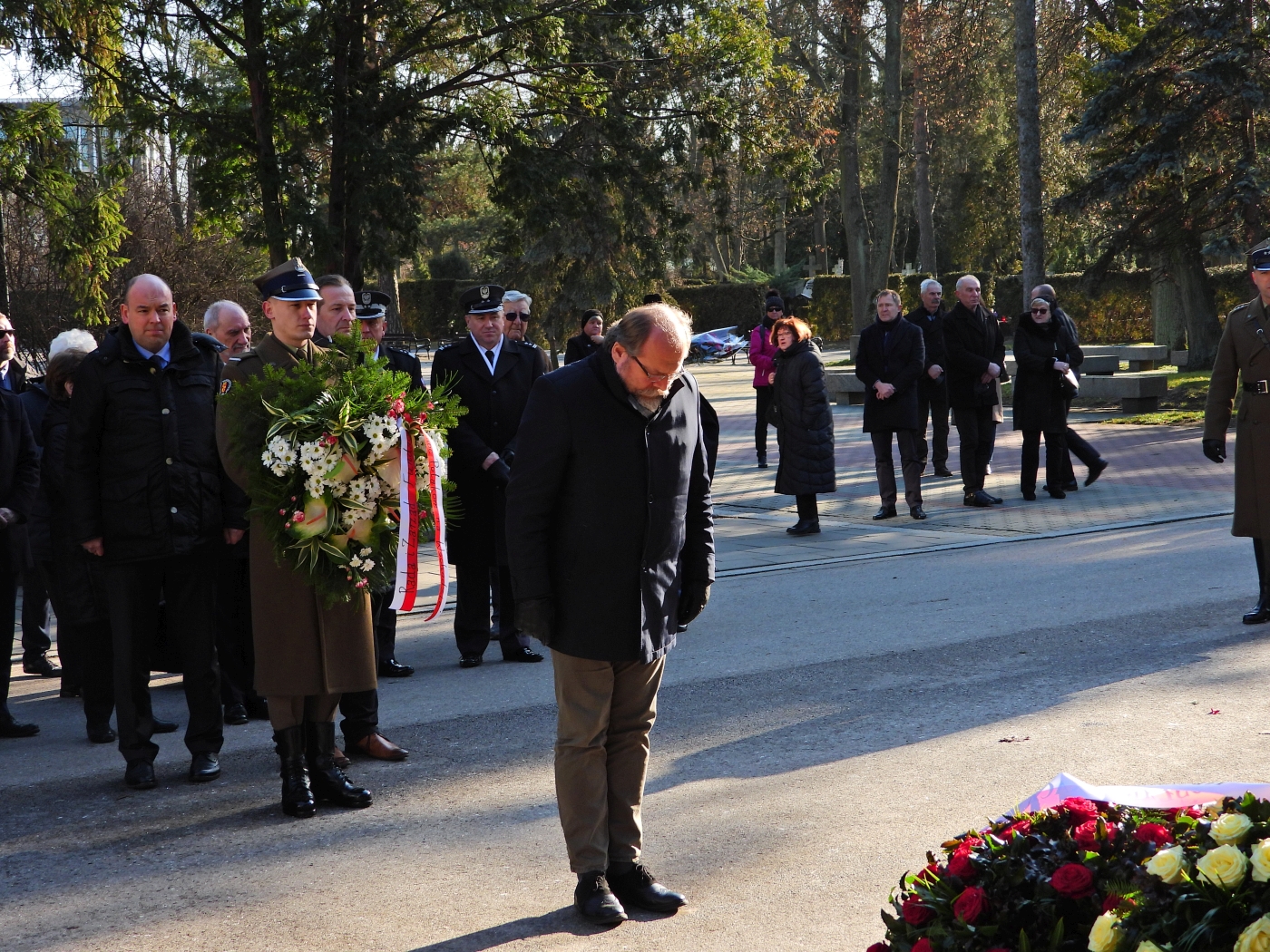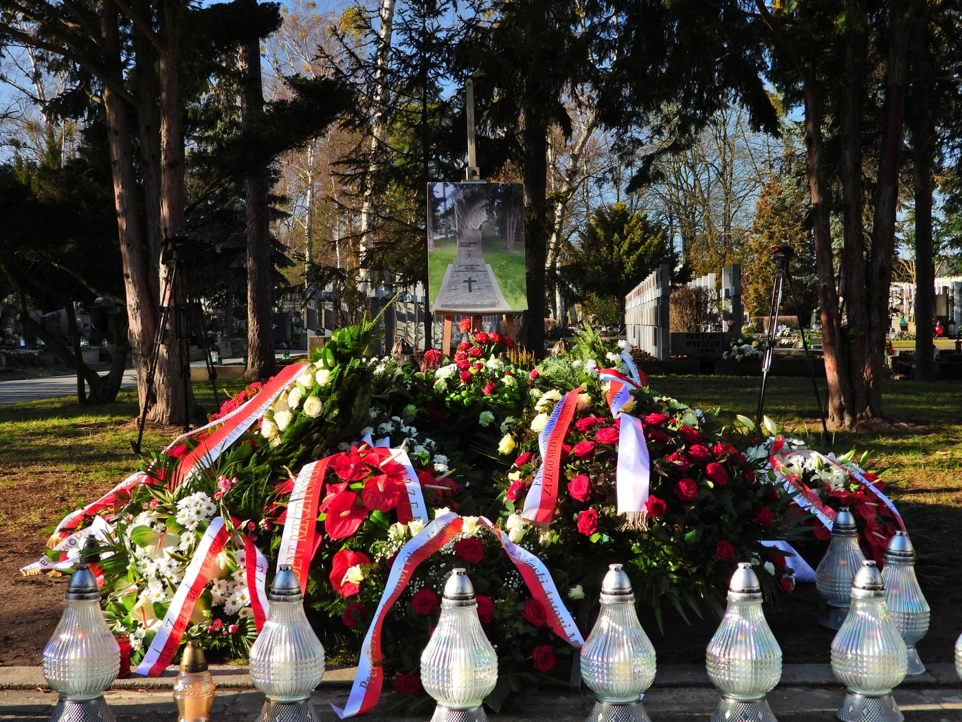Kwiaty na grobie premiera złożyli m.in. wicemarszałek Sejmu Ryszard Terlecki, szef KPRM Michał Dworczyk, minister rolnictwa Jan Krzysztof Ardanowski, doradca prezydenta RP Andrzeja Dudy Zofia Romaszewska, a także prezes Prawa i Sprawiedliwości Jarosław Kaczyński, szef Komitetu Politycznego PiS Krzysztof Sobolewski oraz Antoni Macierewicz, który pełnił funkcję ministra spraw wewnętrznych w rządzie premiera Olszewskiego, i były szef UOP Piotr Naimski.