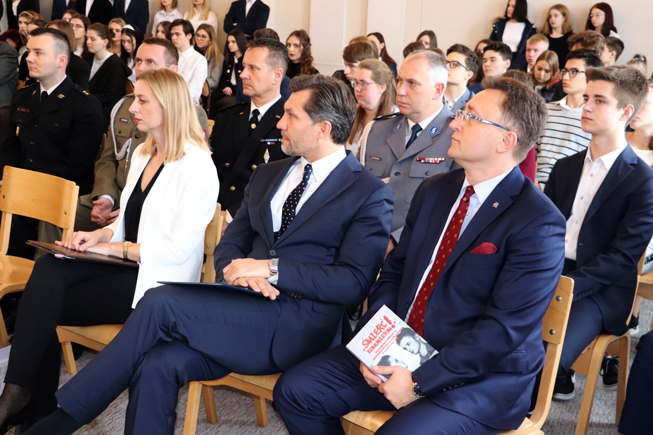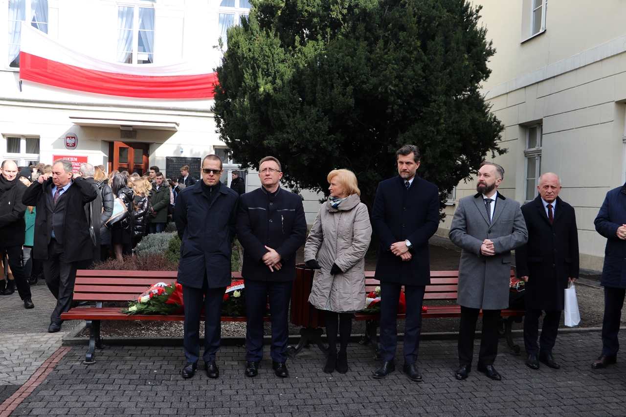 W uroczystości udział wzięli przedstawiciele Sejmu RP, władz państwowych i samorządowych, służb mundurowych, organizacji społecznych oraz licznie zgromadzona młodzież szkolna, absolwenci i emerytowani nauczyciele z „Asnyka”. Do zgromadzonych uczestników list okolicznościowy skierował Mateusz Morawiecki, Prezes Rady Ministrów, którego reprezentował Jan Dziedziczak, sekretarz stanu w Kancelarii Prezesa Rady Ministrów. Ze strony Oddziału IPN w Łodzi w uroczystości wziął udział dr hab. Dariusz Rogut, dyrektora Oddziału oraz pracownicy Oddziałowego Biura Upamiętniania Walk i Męczeńśtwa.