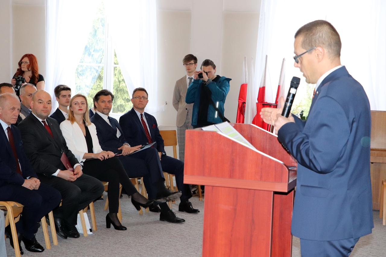 Następnie uczestnicy wydarzenia przeszli do szkolnej auli, w której miały miejsce okolicznościowe przemówienia i projekcja filmu dokumentalnego „Orły z Asnyka” z serii „Zapomniane historie” (TVP3 Poznań).
