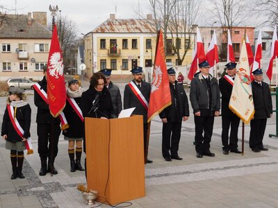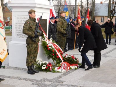 Odsłonięcie tablicy upamiętniającej kpt. Albina Potockiego, mjr. Mieczysława Potockiego ps. „Węgielny”, „Kamień”, kpr. pchor. Dionizego Sosnowskiego ps. „Zbyszek” – bohaterów Ziemi Goniądzkiej – Goniądz, 1 marca 2020