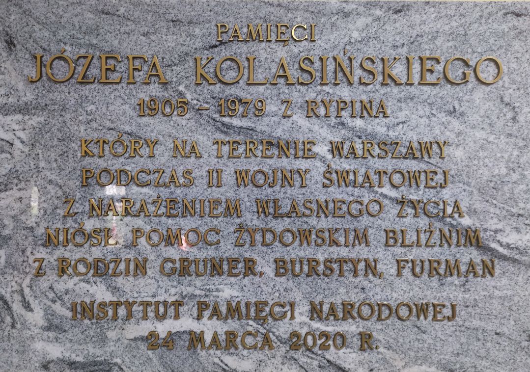 W 1965 r. Józefa Kolasińskiego uhonorowano tytułem Sprawiedliwy wśród Narodów Świata. Podczas ceremonii miał powiedzieć: „Cieszę się niezmiernie, że było mi dane być pomocnym swym przyjaciołom i wielu innym Rypiniakom w ich ciężkich chwilach w okresie getta warszawskiego. Żałuję, że tylko tak niewiele zrobiłem. Cieszę się świadomością, że chociaż będę musiał opuścić Wasz gościnny kraj, pozostanę z Wami na zawsze pod postacią dziś posadzonego drzewka, które będzie świadczyć o naszej przyjaźni”.