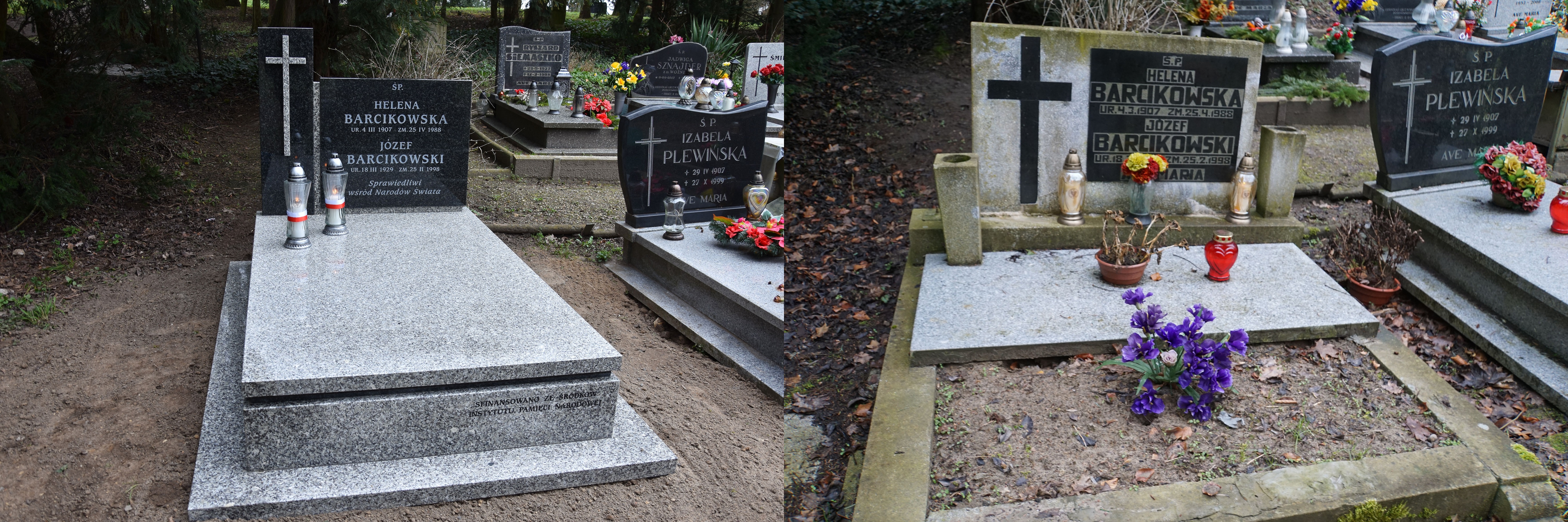 Oddział Instytutu Pamięci Narodowej w Szczecinie, w przededniu tegorocznych obchodów Narodowego Dnia Pamięci Polaków ratujących Żydów pod okupacją niemiecką, odnowił na Cmentarzu Centralnym w Szczecinie nagrobek Heleny i Józefa Barcikowskich (kw. 61A, rząd 2, grób nr 1)