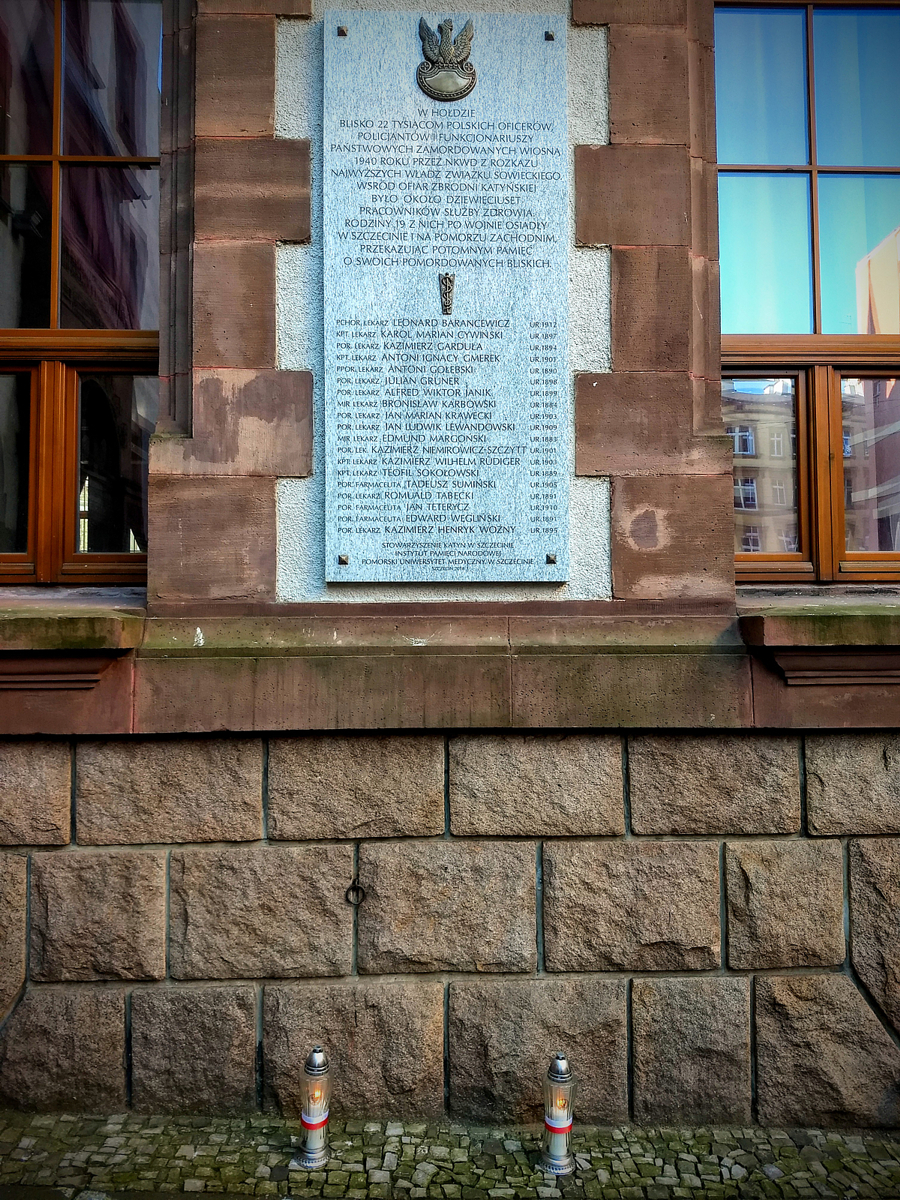 Znicze zapłonęły także pod tablicą upamiętniającą około 900 pracowników służby zdrowia, oficerów rezerwy Wojska Polskiego zamordowanych w Zbrodni Katyńskiej, która znajduje się na gmachu rektoratu Pomorskiego Uniwersytetu Medycznego. Nie zapomniano również o pomniku „W 60. rocznicę Zbrodni Katyńskiej”, znajdującym się przy pl. Ofiar Katynia.