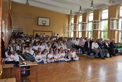 Następnie w szkole podstawowej odbyła się uroczysta akademia słowno-muzyczna poświęcona setnej rocznicy odzyskania niepodległości przez Polskę, przygotowana przez nauczycieli i uczniów szkoły. Po akademii komisja wraz delegacją szkolną ze sztandarem szkoły odwiedziła grób zbiorowy wojenny 36 żołnierzy poległych w I i II wojnie światowej na cmentarzu komunalnym przy ul. Krasickiego składając kwiaty i zapalając znicze.