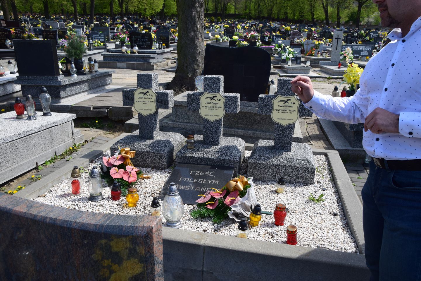 Po spotkaniu w Szkole Komisja udała się na przegląd grobów Powstańców Śląskich na cmentarzu przy parafii św. Wojciecha (ul. Cmentarna). Po cmentarzu gości oprowadził Kierownik Referatu Promocji Miasta Pan Jarosław Wroński. Opowiedział także o pochowanych tam Powstańcach Śląskich. Na tym wizytację zakończono.