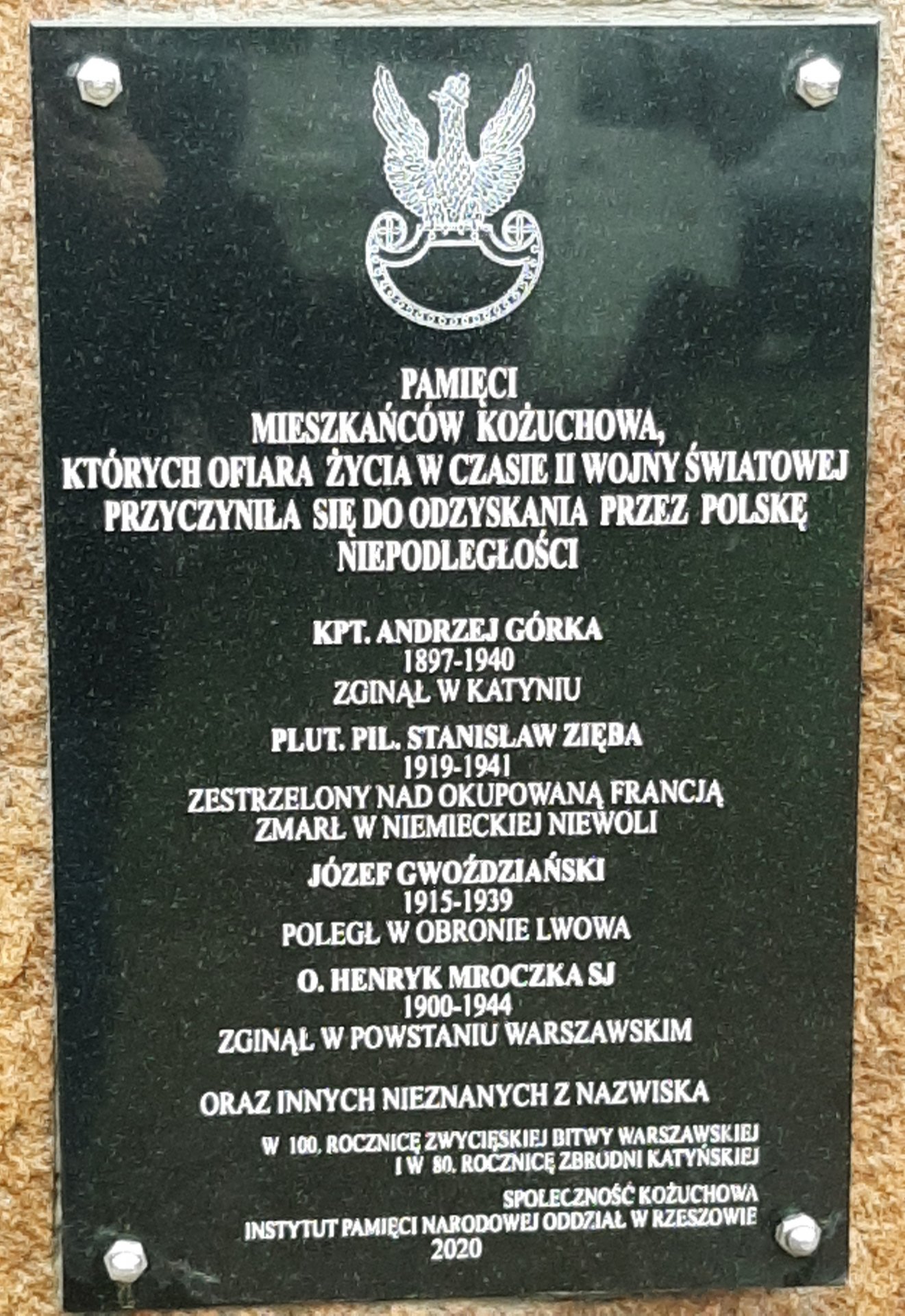 Tablica poświęcona mieszkańcom Kożuchowa, którzy zginęli w czasie II wojny światowej