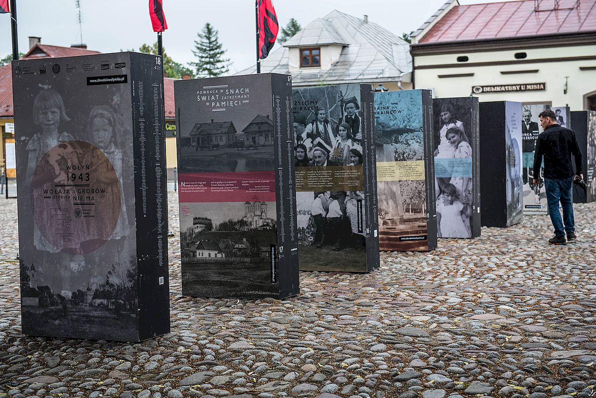 Wystawa „Wołyń 1943. Wołają z grobów, których nie ma” na Rynku Starego Sącza. Fot. Agnieszka Masłowska (IPN) -